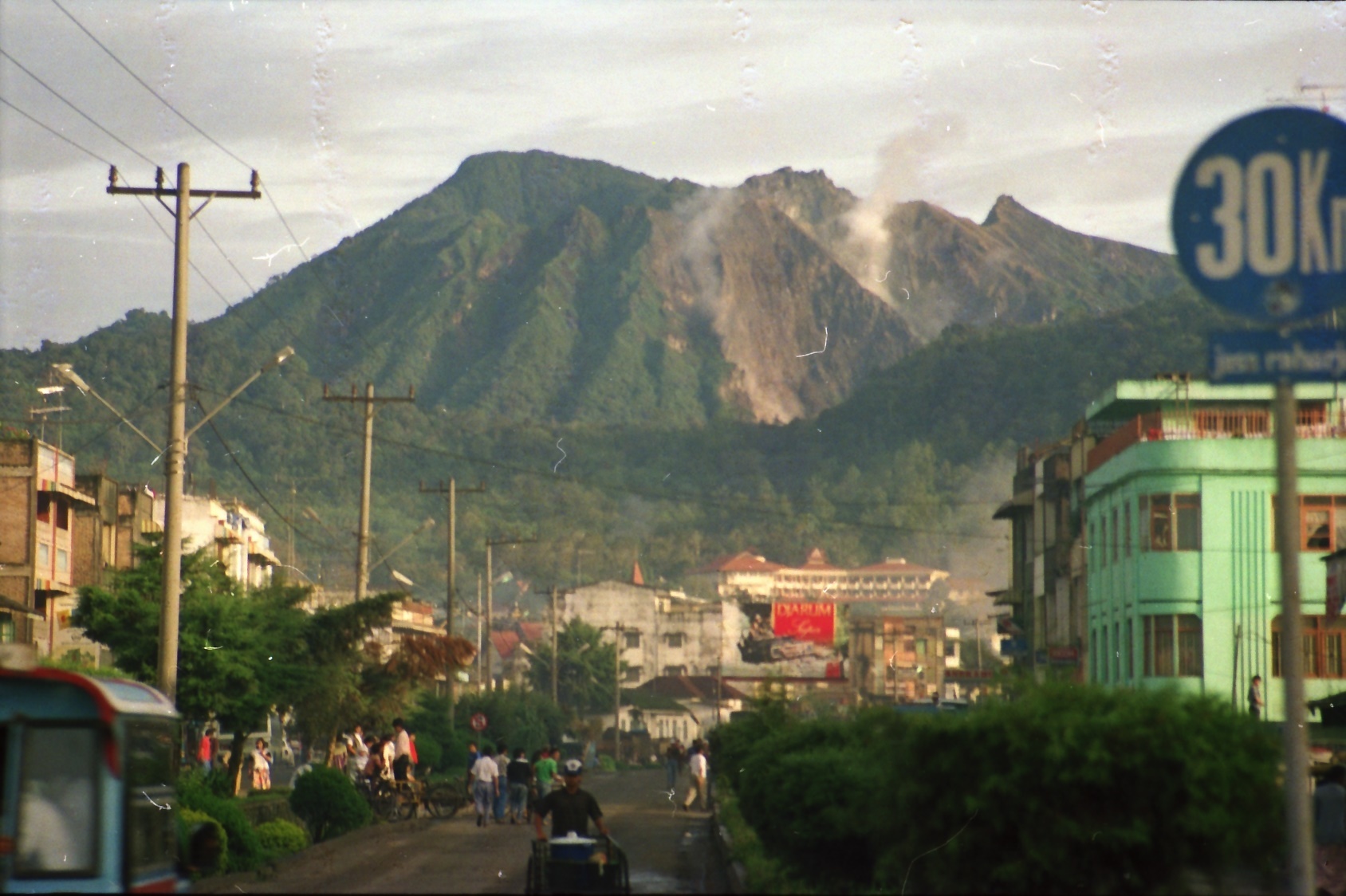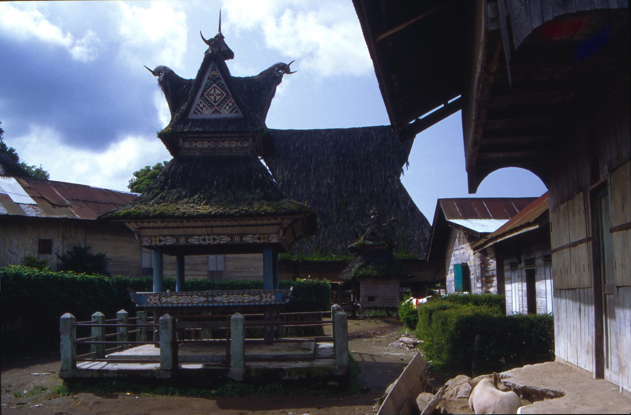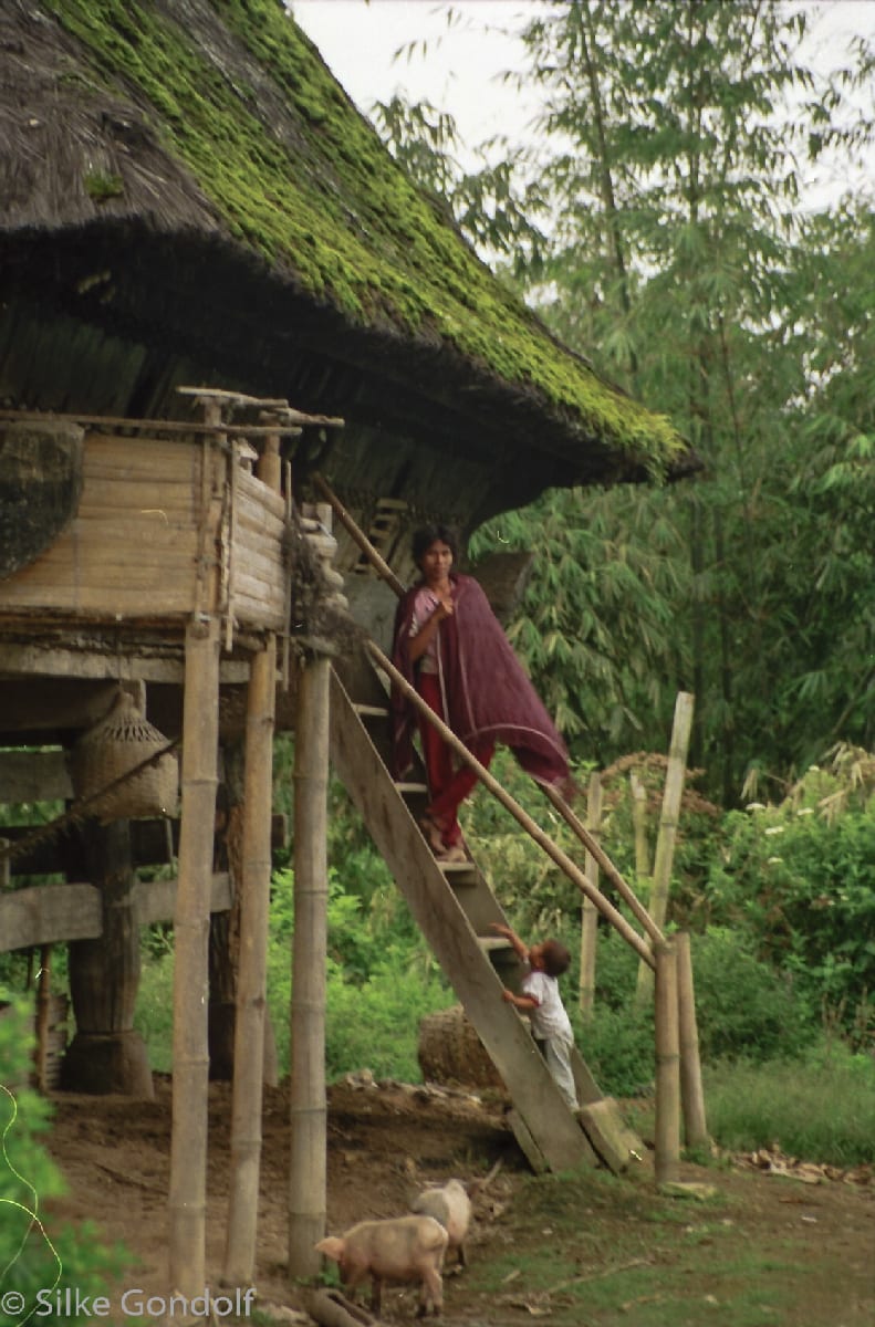 Batak houses are boat-shaped with intricately carved gables and upsweeping roof ridges. Karo Batak houses rise up in tiers. Each Batak group has its own rules and traditions. Toba Batak houses are laid out side by side with their front gables facing the street. It felt like entering an ancient untouched world. The street formed between the row of houses and the row of granaries is known as the alaman and is used as an area for work, drying of rice. Getting caught in bad weather on top of the Sinabung volcano was not a good idea. I went back in 1991.